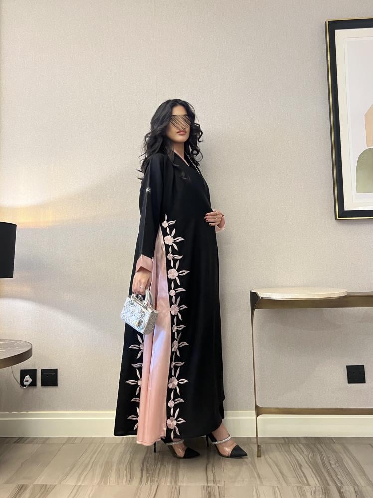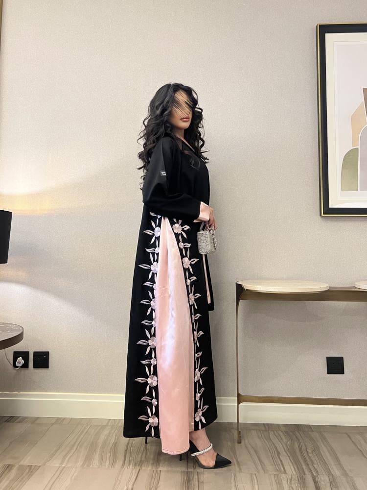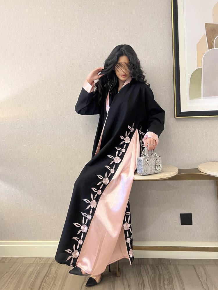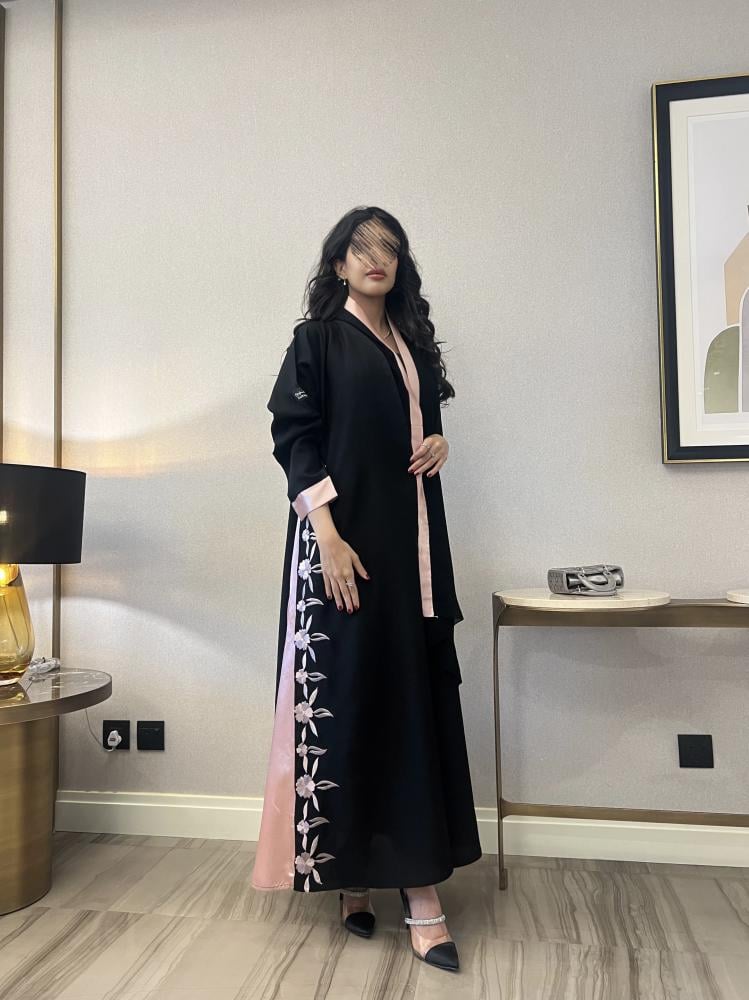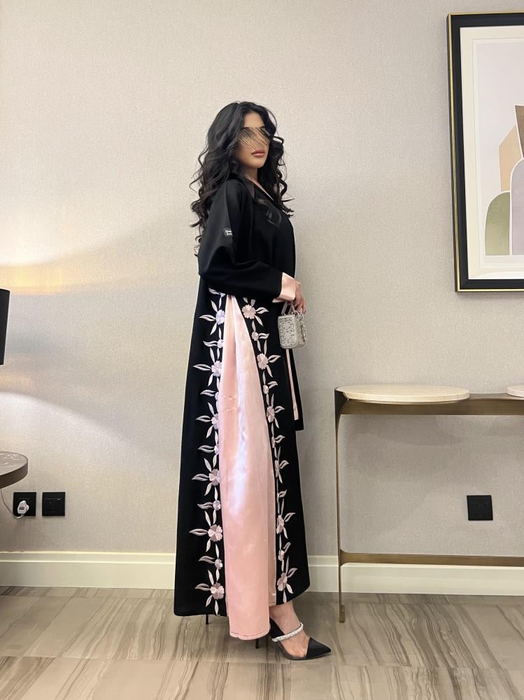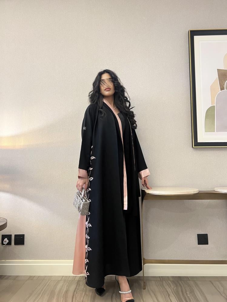 عبايه نص كلوش تطريز ستان على الجوانبوالكمنوع القماش الاسود / كتانالطرحه تطريز على الطرفالعبايه طقطق مقفله